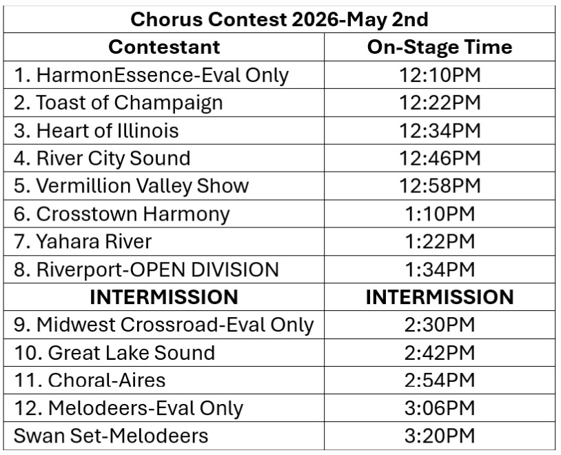 Chorus Contest: Saturday May 2nd, 12pm-5pm CT